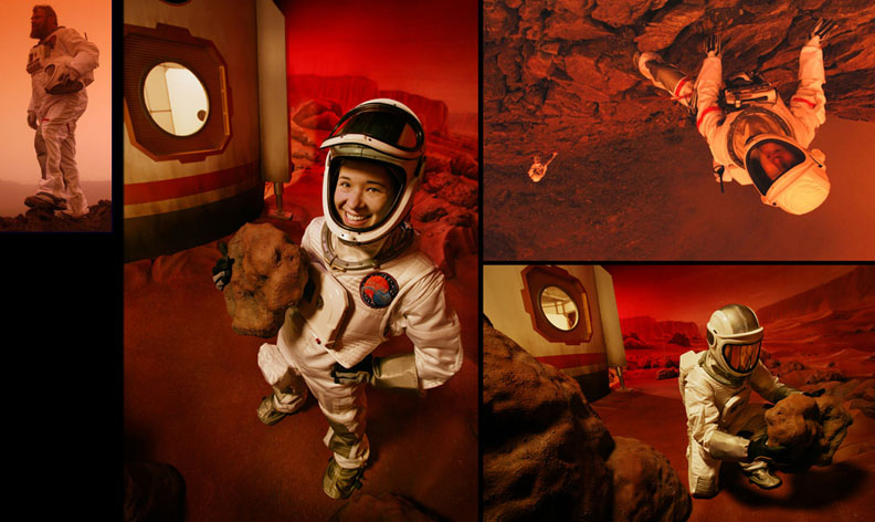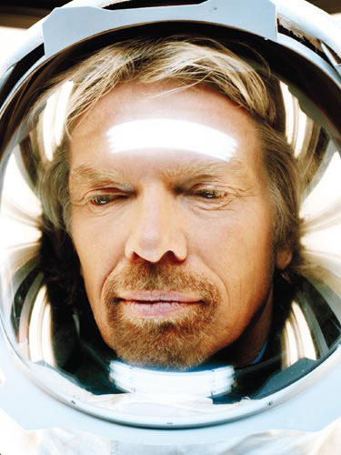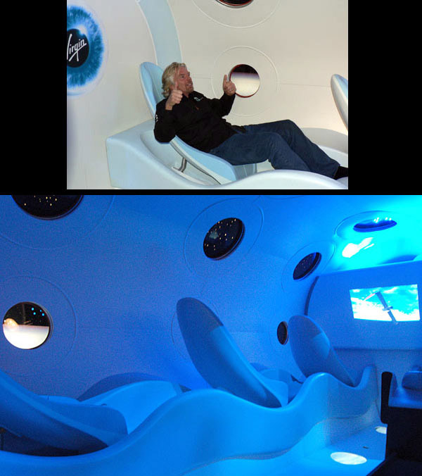 Sir Richard Branson in Spaceship II mockup, built by Global Effects Inc.