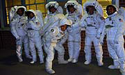 If your looking for that "silver suit" or one of those "Apollo 13 suits", we got the best from helmet to boots! Whether it's Mercury, Gemini, Apollo, Shuttle or beyond, NASA's helped us to produce the most accurate and comfortable reproductions this side of space. How far beyond? We helped the producers of "Armageddon" and "Deep Impact" see their tomorrow. Even NASA came to us for some new ideas. How comfortable? When the producer of HBO's "From the Earth to the Moon" needed a dozen space suits from Mercury to Apollo, and didn't want real space suits that looked like costumes, but costumes that looked like real space suits, we handled the pressure. Clint Eastwood asked us to "make his day". So we did, with 10 custom space suits for his movie "Space Cowboys".